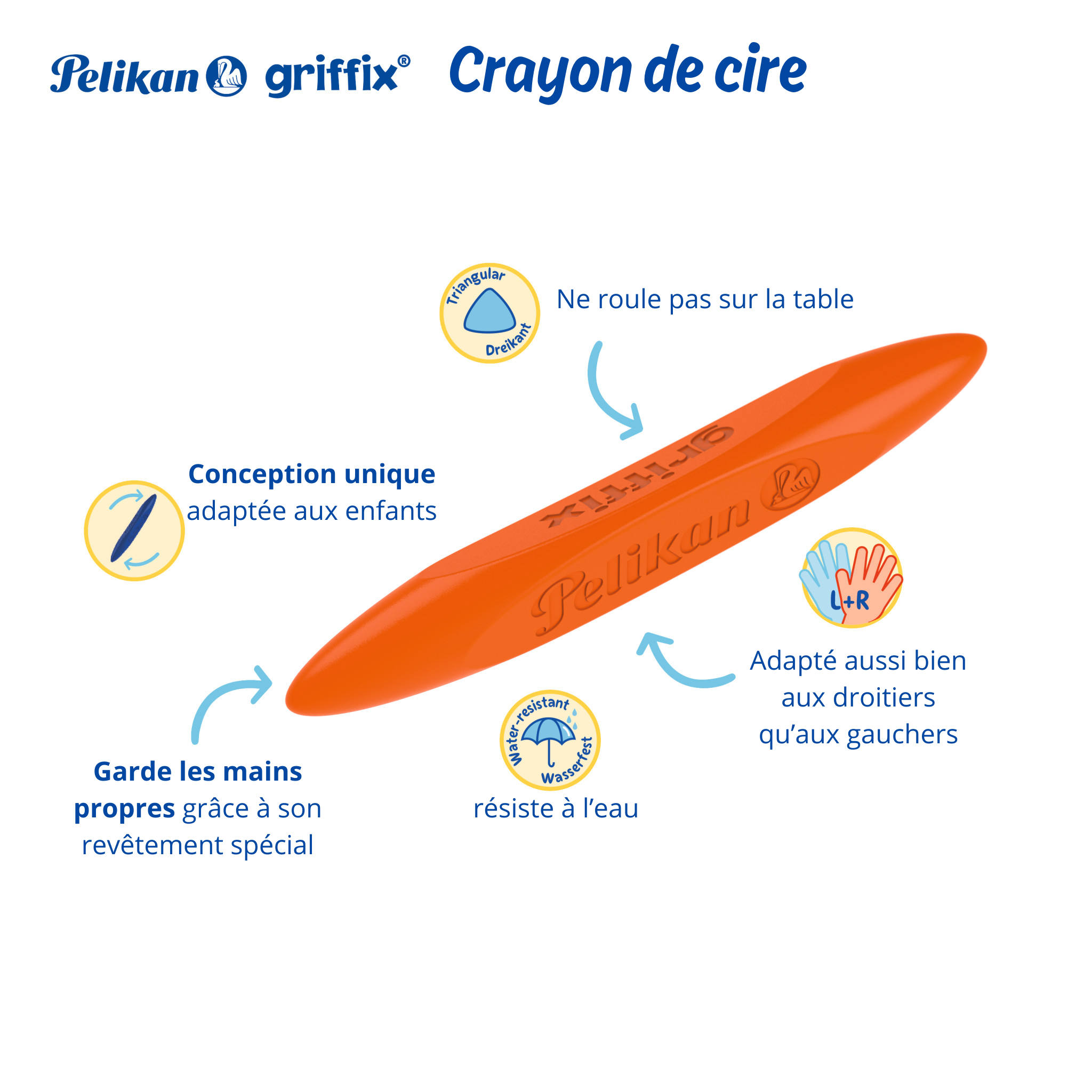 8 CRAYONS CIRE PELIKAN GRIFFIX 8 COULEURS TRIANGULAIRE